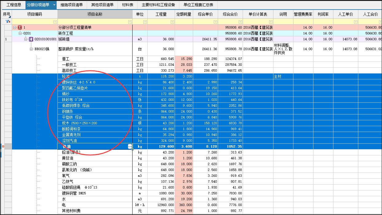 【ctrl+鼠标左键】单条选中、【 shift+材料首行+材料尾行】块选中,实现材料快速复制、粘贴、删除等功能。