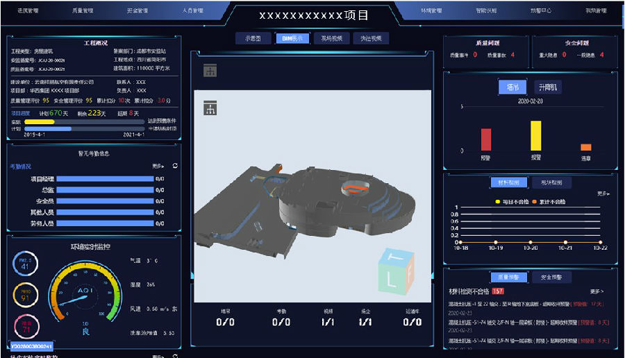 智慧工地平台主要利用智能终端、物联网、移动互联等技术,实时采集建设过程数据,利用大数据、人工智能技术对建设过程的数据进行实时分析,自动锁定施工现场质量安全隐患并进行预警,预警信息直接自动反馈至施工现场相关负责人和主管部门,并根据问题不同等级自动触发现场处置流程,一般为由项目部自行整改,较大或严重问题则由主管部门介入核实,一经认定的违规行为自动进入信用评价。